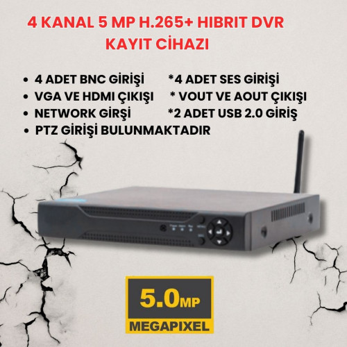 1 ADET - 4 KANAL 5 MP H.265+ XMEYE WIFI ÖZELLİKLİ AHD DVR KAMERA KAYIT CİHAZI