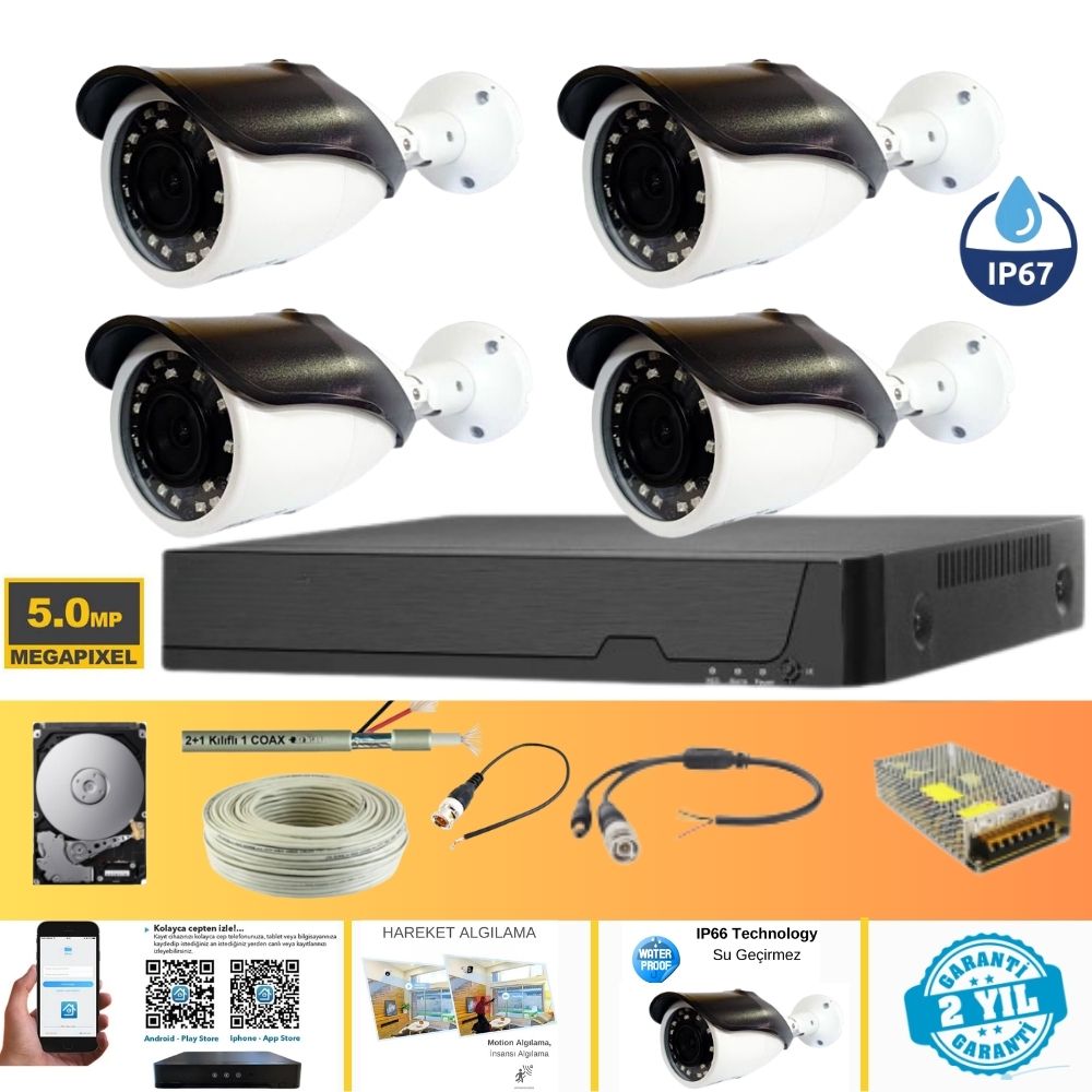 4 ADET - Premium Seri 5 MP 1440P 24 SMD LED Metal Kasa IP66 AHD Güvenlik Kamerası